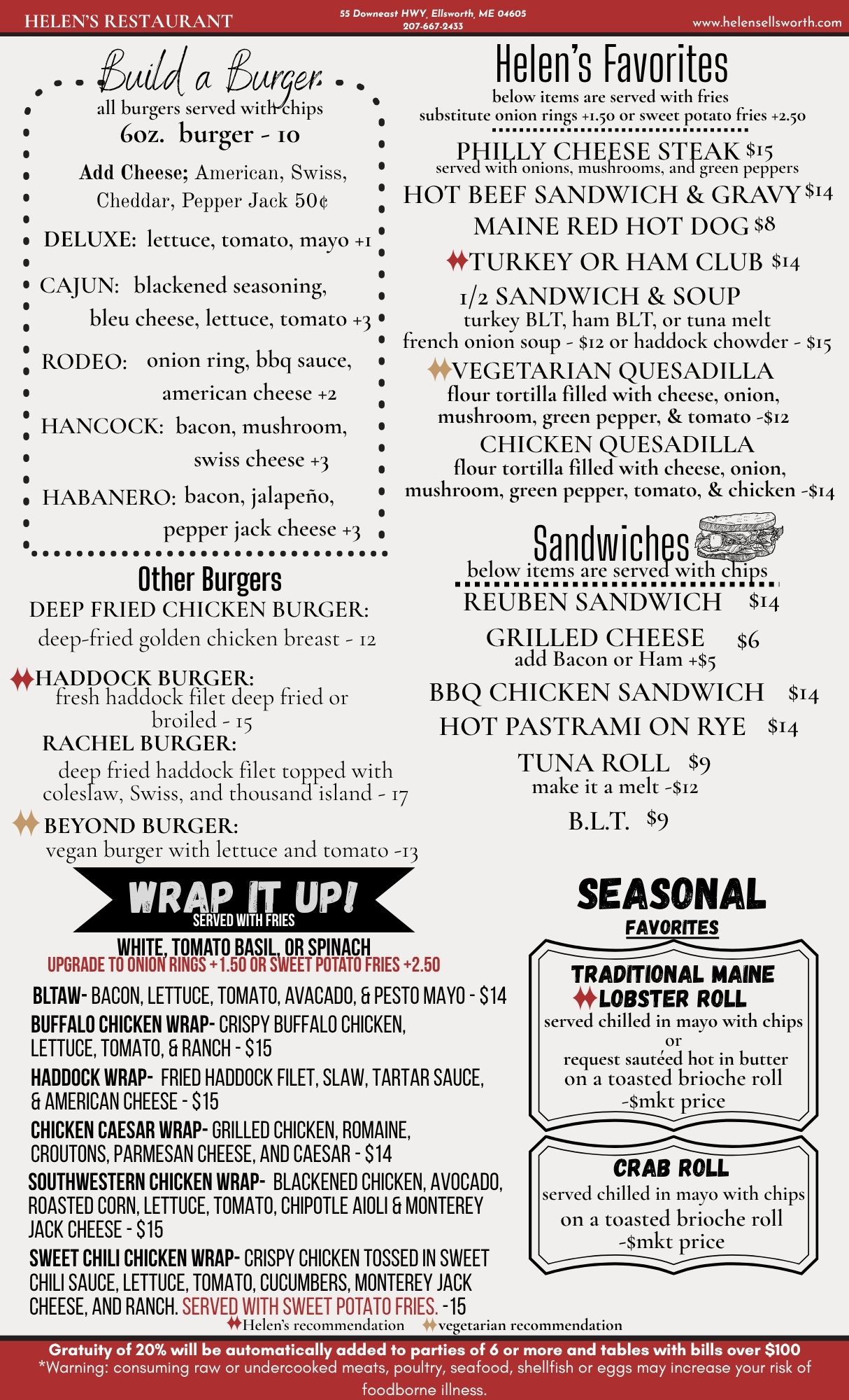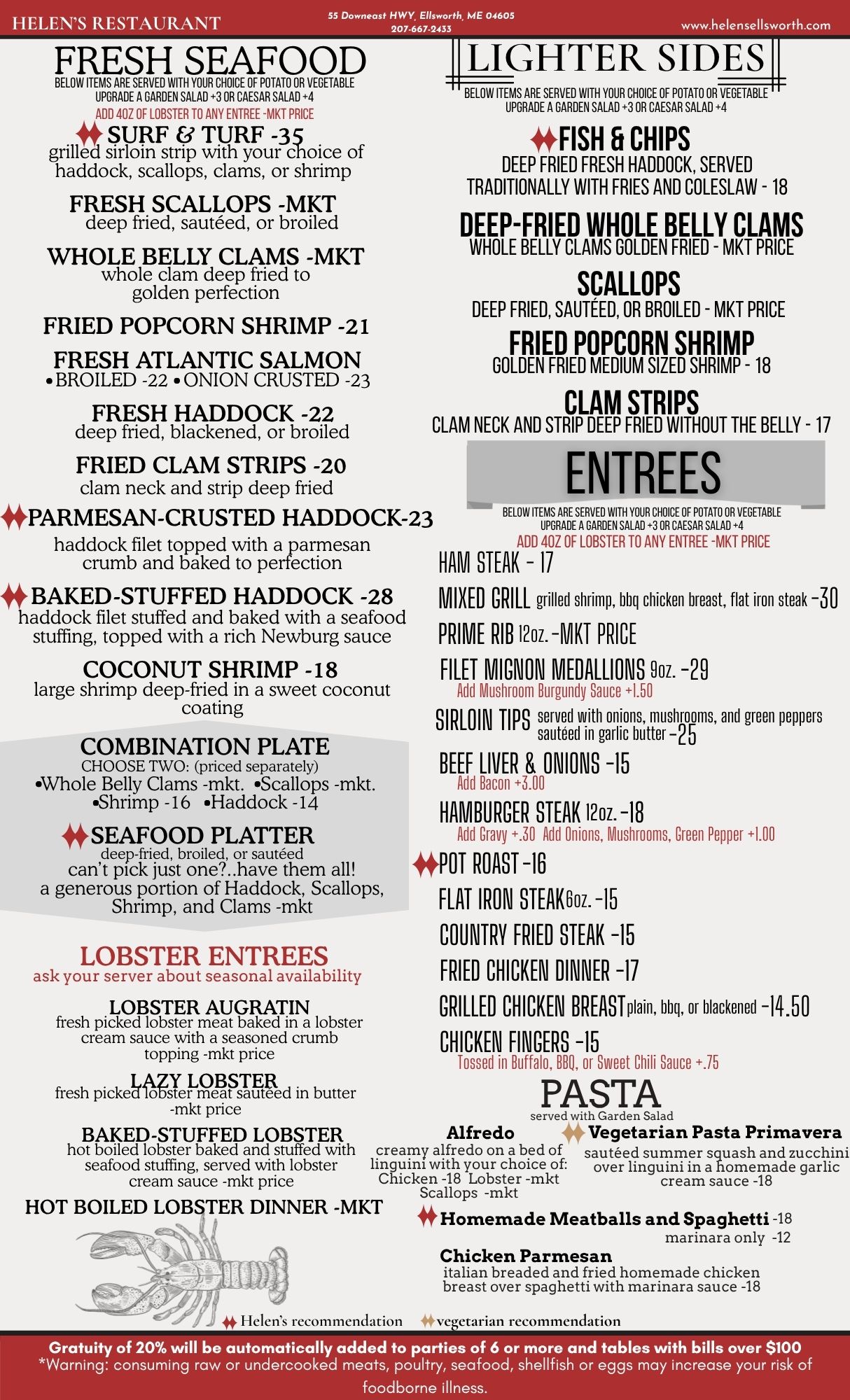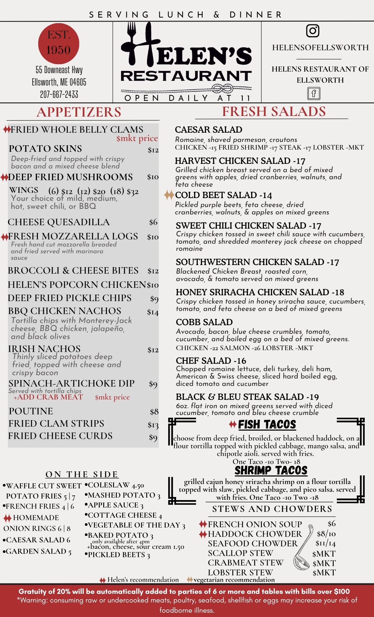 Helen’s can supply all of your catering needs–from appetizers and hors d’oeuvres to dinner service with a full bar. Please contact us via email at helensrestaurant94@gmail.com for more information.